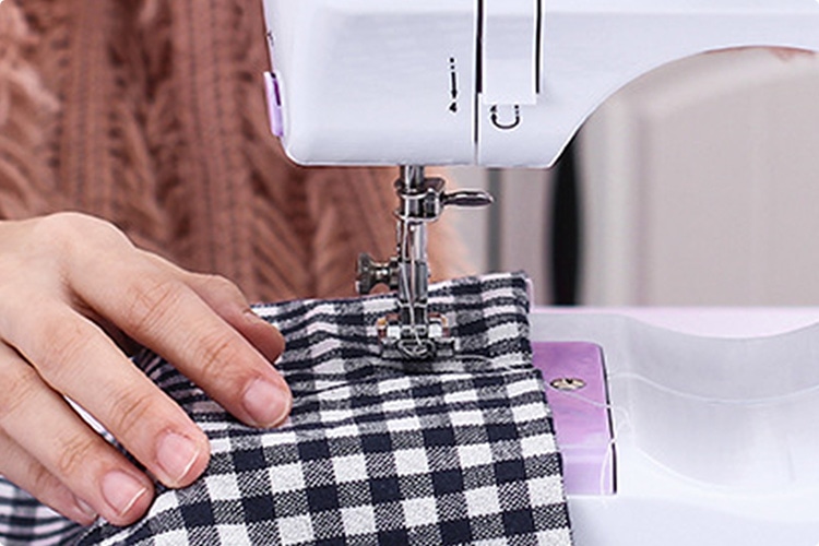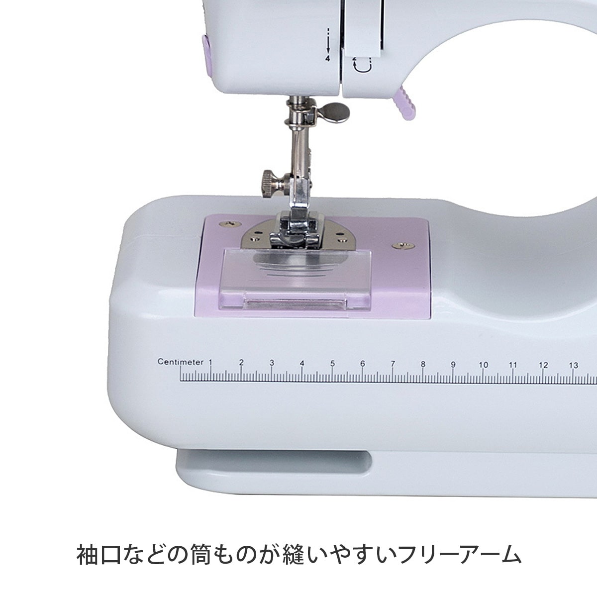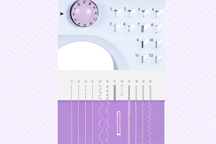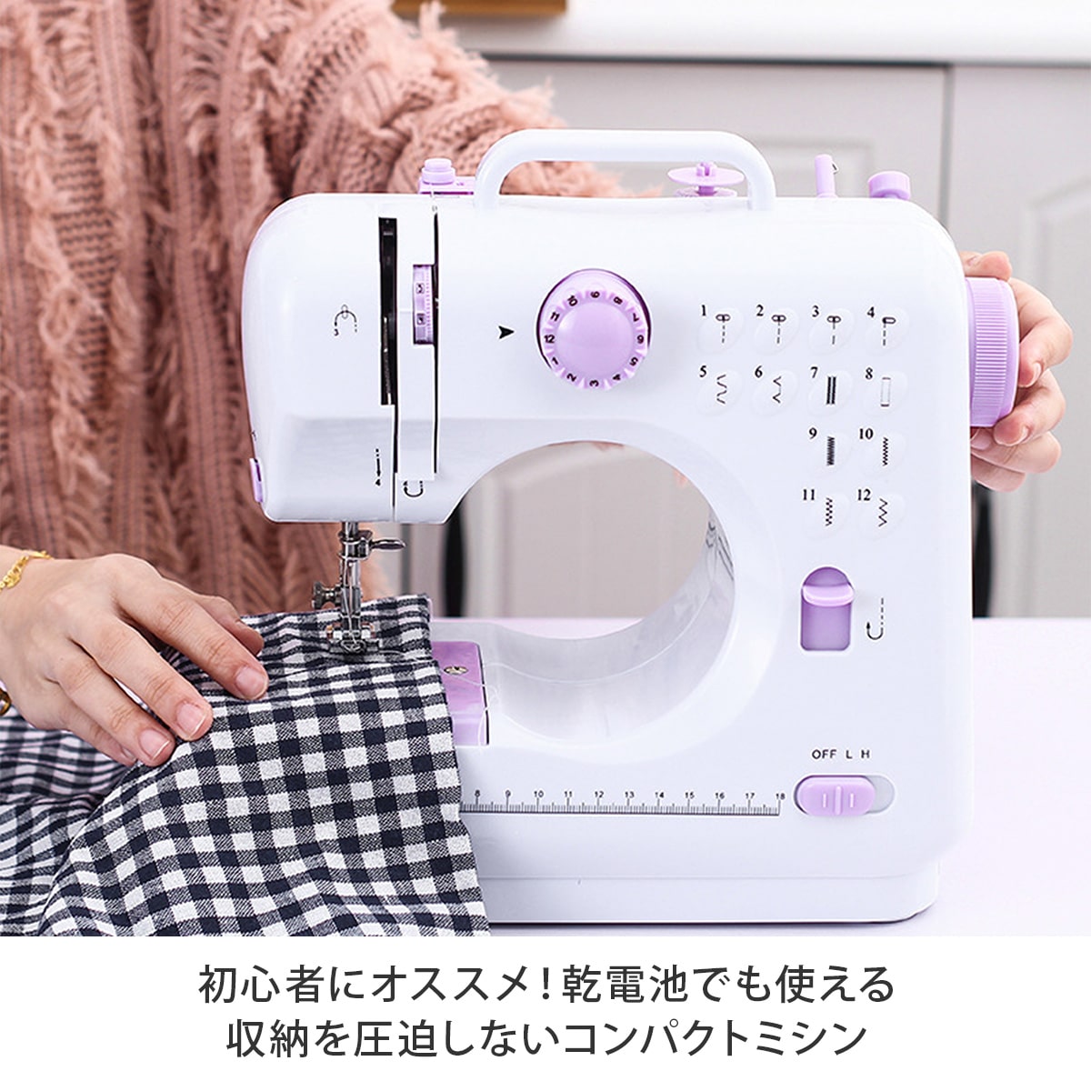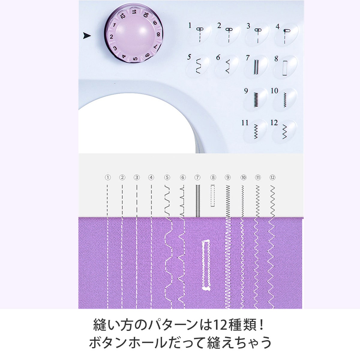 新電動コンパクトミシンは、直線縫いはもちろん、布端の処理に便利なジグザグやまつり縫い、ボタンホールといった、12種類の便利な縫い方のパターンを搭載。小さいけれど、お洋服だって作れちゃうミシンです。