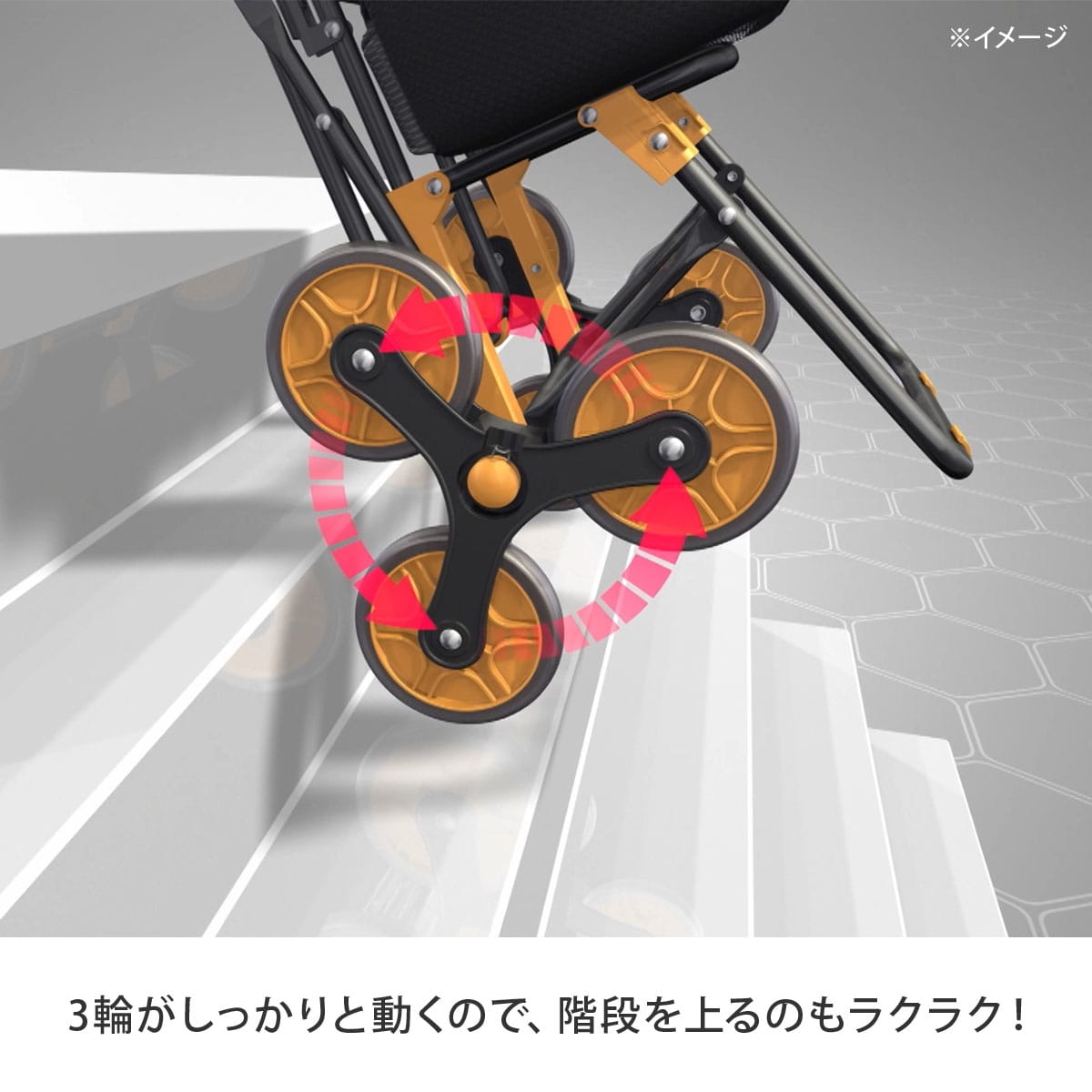 3輪が動くので階段もラクラク!