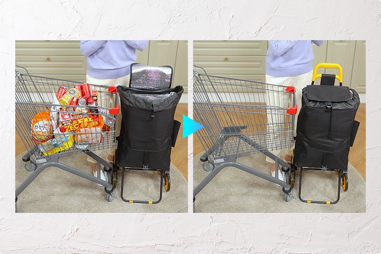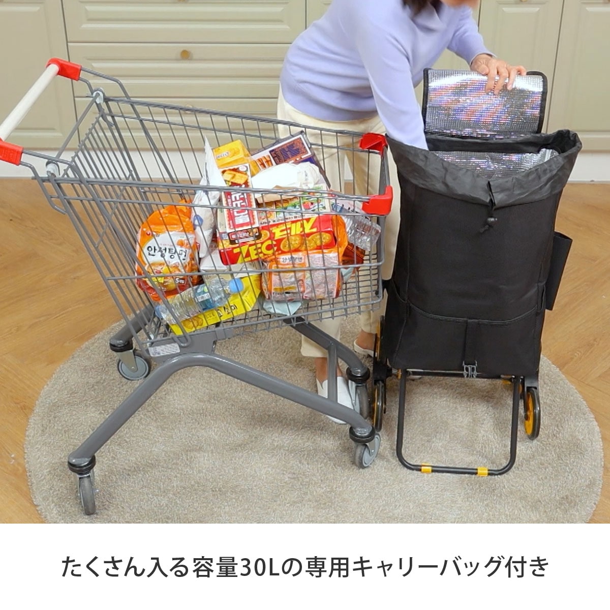 イージーカートに付属しているキャリーバッグの容量は30Lと大容量!お買い物の荷物もたくさん入るので、重い荷物を持って帰るストレスが軽減します。