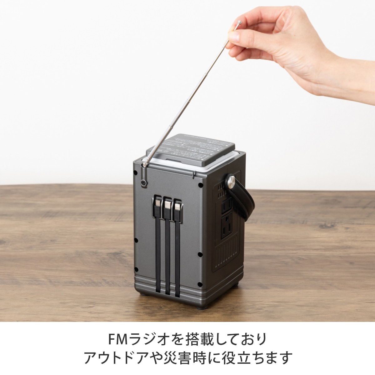 FMラジオ(ワイドFM対応)を内蔵しているので、災害時の電源がない場所でもこれ1台で防災情報を受け取ることができます。庭先やアウトドアでの日常使いにもオススメです。