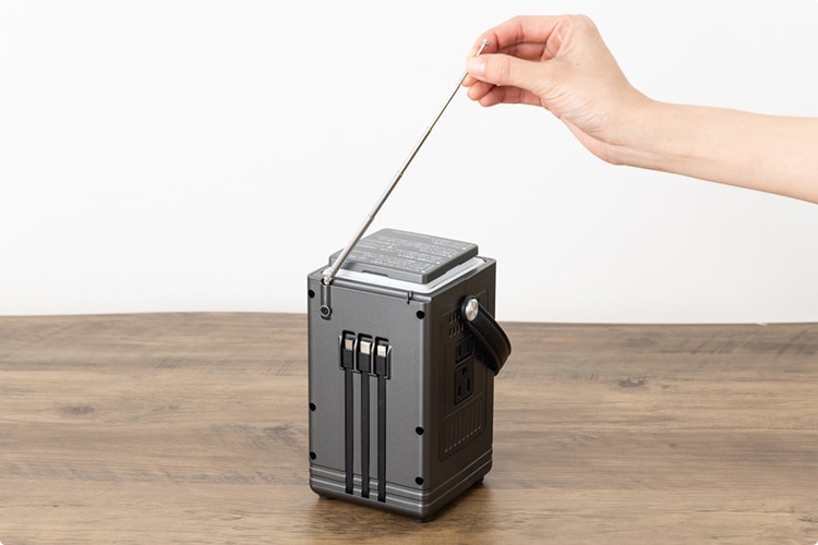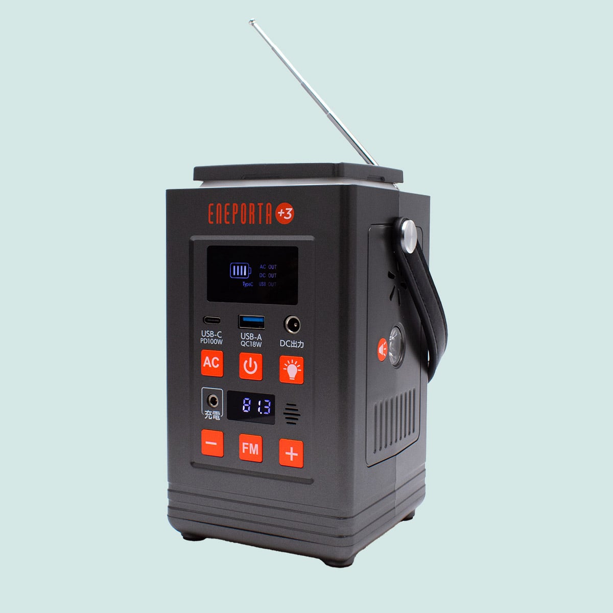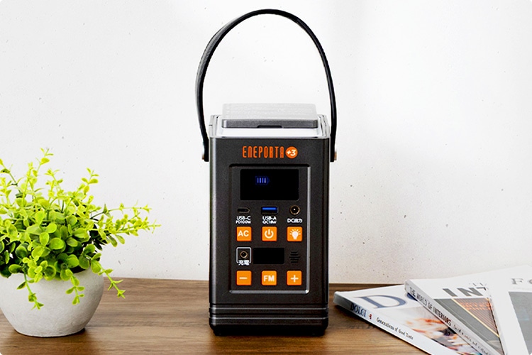 エネキューブは、停電や災害時にも安心を届けるポータブル電源。ラジオ、ライト、充電を1台で備え、日常から非常時まで頼れる存在です。