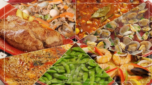 フレーバーストーン双子パンは、焼く、炒める、煮る、蒸す、炊く、ゆでる、オーブン風調理までできる1台7役の万能フライパンです。ハンバーグやラザニア、イカの丸焼きなど、多様な料理を手早く簡単に!料理のバリエーションがぐっと広がります。
