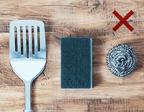 せっかく買ったフライパン、思ったよりもすぐにコーティングがはがれて焦げ付くようになってしまった・・・ そんな経験はありませんか?フレーバーストーンを長くご愛用いただくため、ご注意いただきたいのはとにかく衝撃を与えないこと。包丁や、金属製のヘラのご使用や、空焚き・急激な温度変化は劣化を早めてしまいますのでご注意ください。