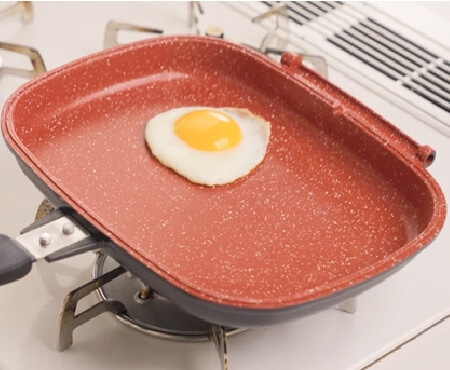 両面焼きスタイルなので、フライ返し不要で簡単調理。取り外して1枚ずつでも使用可能。