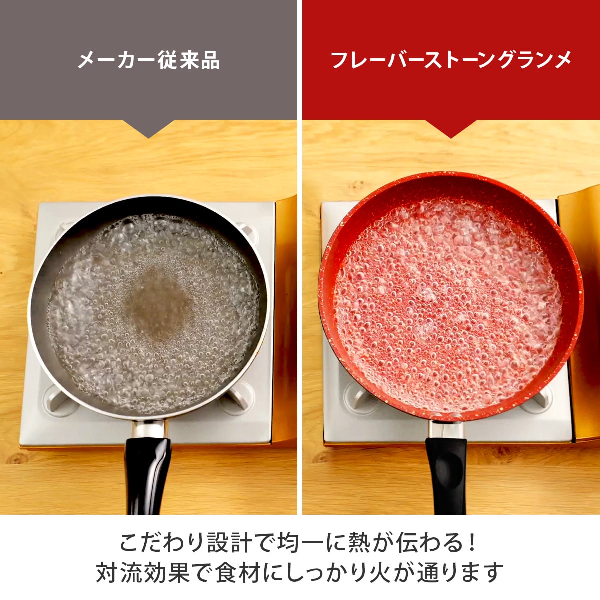 フレーバーストーングランメ ソテーパンは、コーティングが進化したフレーバーストーンシリーズのフライパンです。耐久性がアップし、長い期間くっつきにくくてこげつきにくい快適な使い心地が持続します。