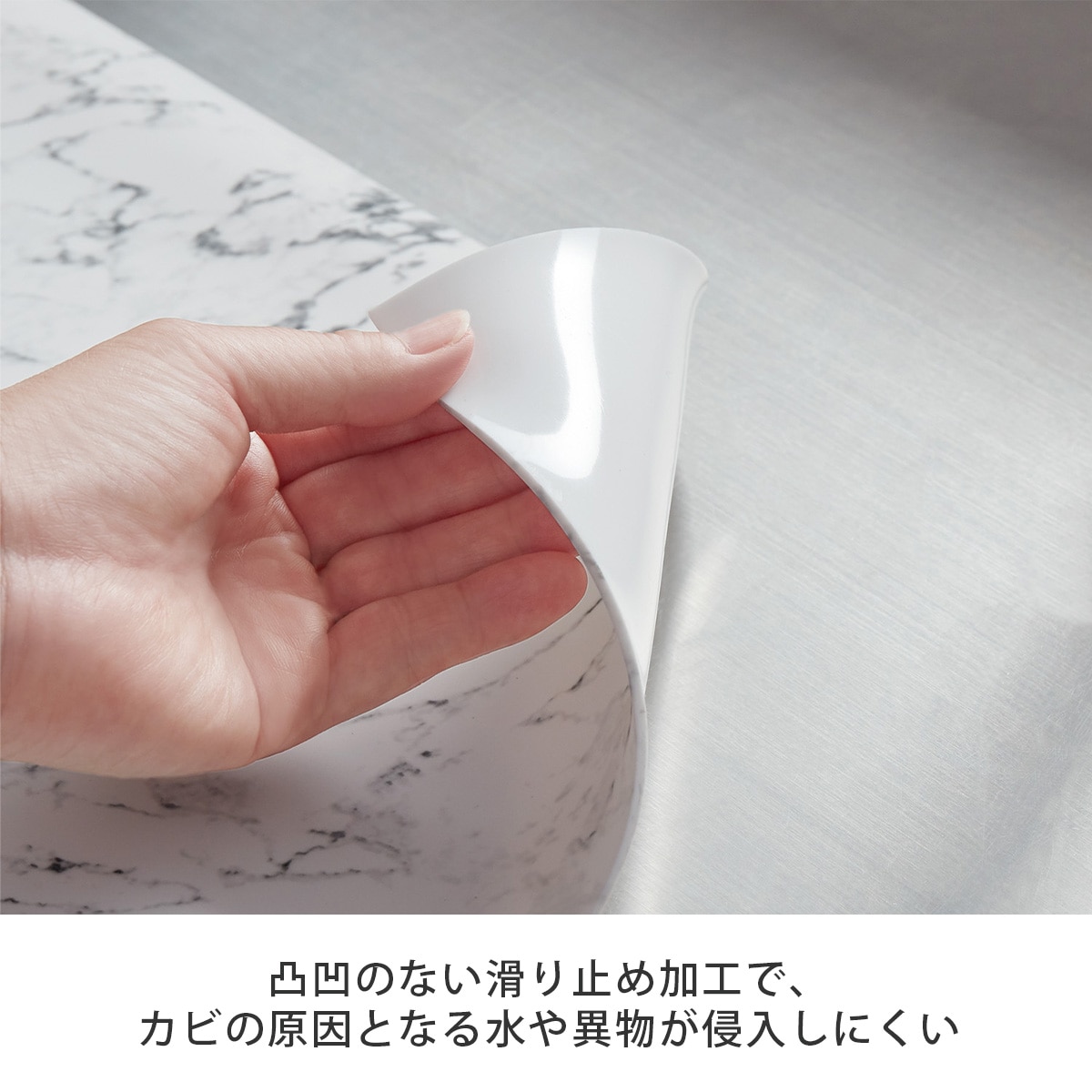 フワピタフルサイズシリコン調理台マットの裏面はフラットな滑り止め加工で、ピタッと密着。水分や食材カスが入り込みにくく、衛生的に使えます。余分な汚れがつきにくいので、清潔に保ちやすく快適なキッチン環境をキープ!毎日使う場所だからこそ、清潔さと安心感が大切です。