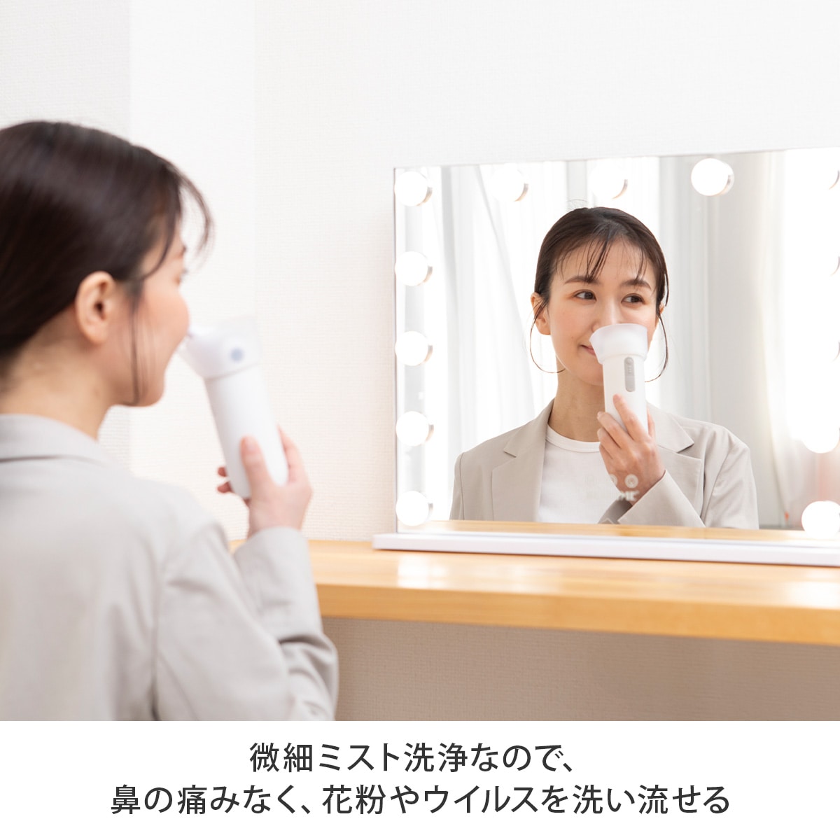 鼻洗浄器「はなミスト」は、微細ミストで鼻の奥までやさしく洗浄。花粉やウイルスをしっかり除去し、ツーンとした痛みのない快適な鼻うがいが可能です。
