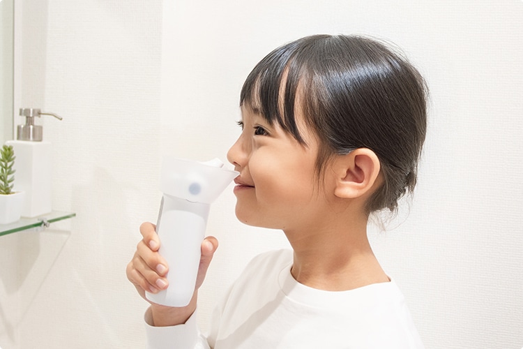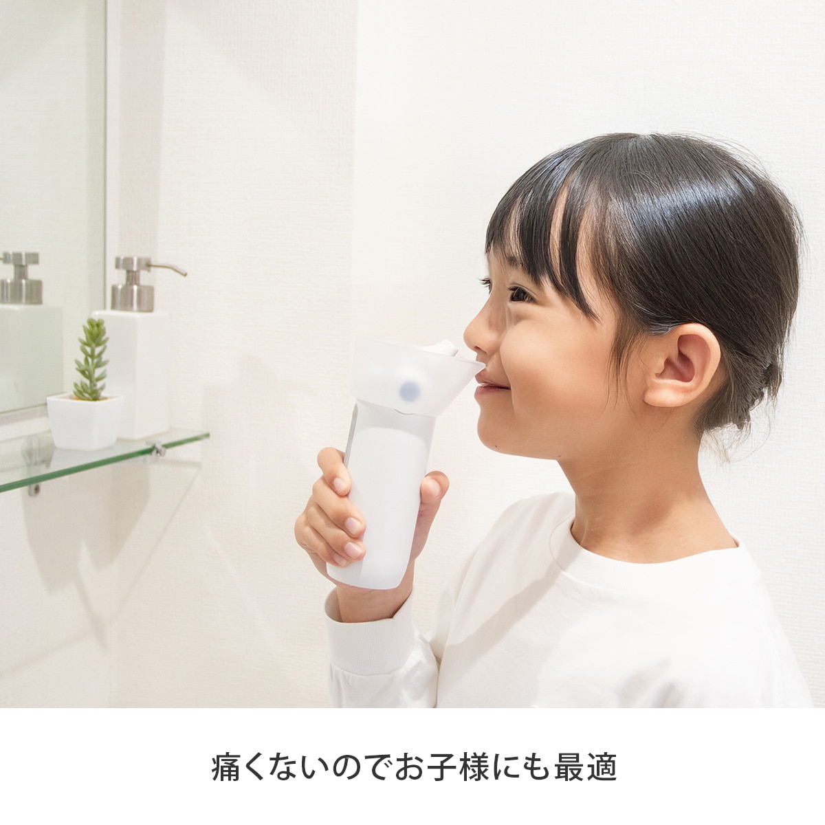 鼻用洗浄器「はなミスト」は、やさしいミスト洗浄で鼻の粘膜に負担をかけず、強い刺激を感じにくい構造。鼻うがいに慣れていないお子様でも怖がらずに使える設計です。