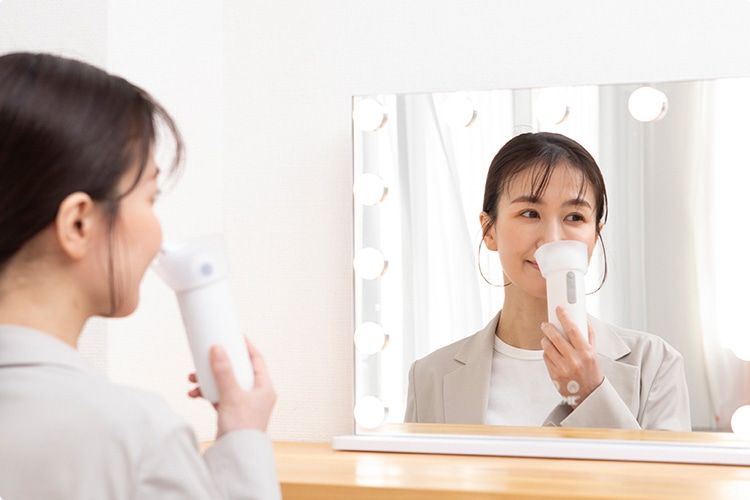 鼻洗浄器「はなミスト」は、ソフト・ノーマル・リズムの3モードを搭載。鼻のコンディションや好みに合わせて洗浄強度を切り替えられる設計。やさしく洗いたい時、しっかり洗いたい時、心地よい刺激が欲しい時など、状況に応じた使い分けが可能です。