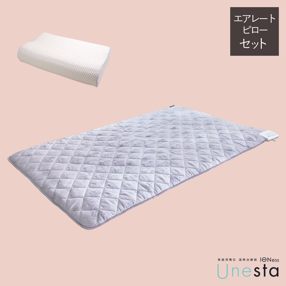 頭痛、肩こり、不眠症及び慢性便秘の緩和が認められた家庭用電位治療器「イオネスユネスタ」と、機能性枕「エアレートピロー ルネッタ」のセットです。