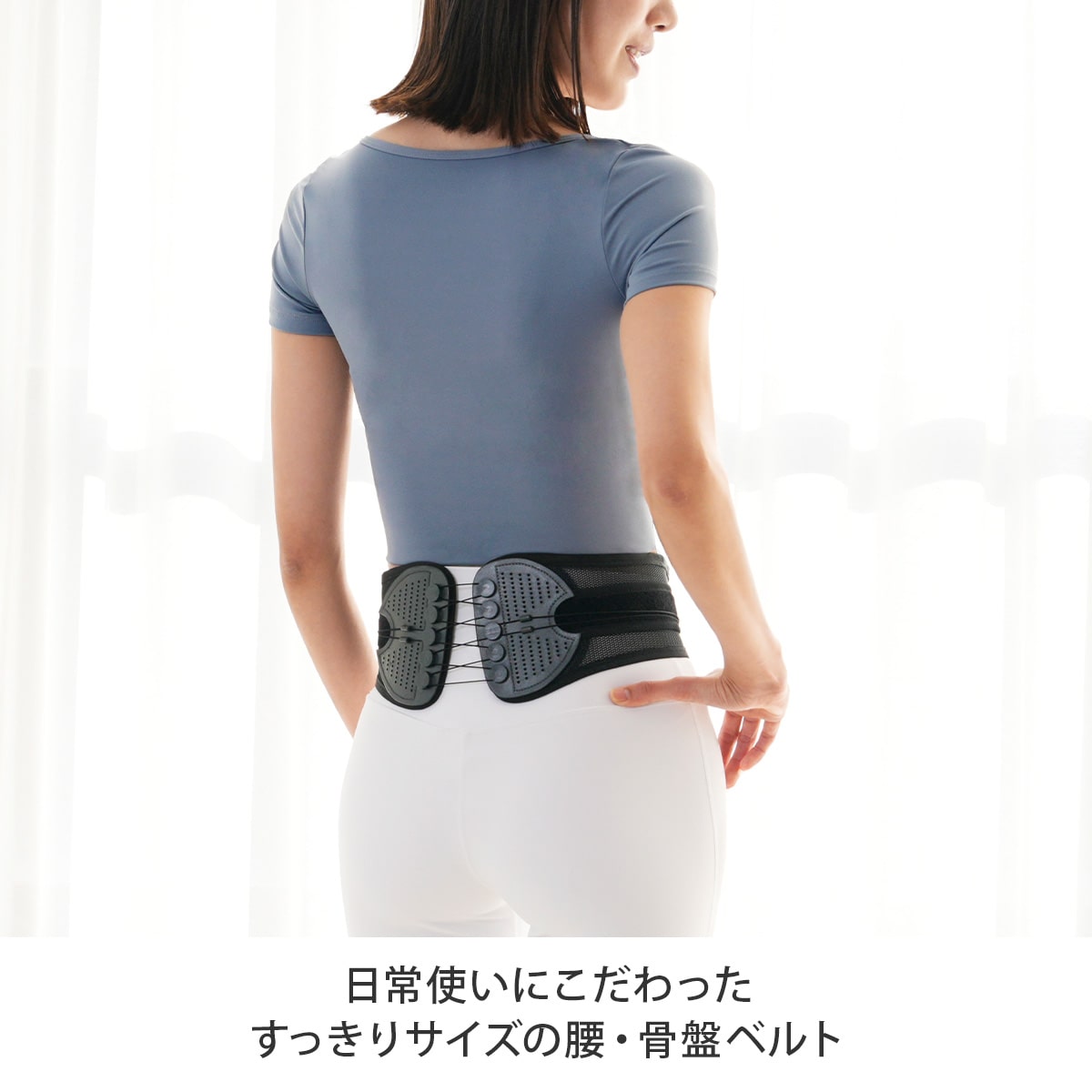 腰の神様は日常使いにこだわった、すっきりサイズの腰・骨盤ベルトです。