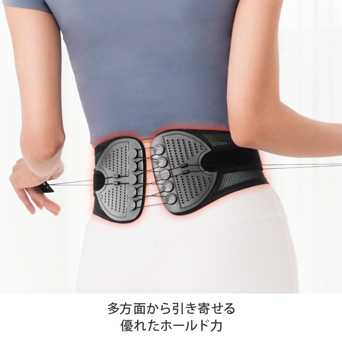 腰や骨盤でお悩みの方に寄り添う「腰の神様」。服に響かない設計で快適な着け心地で骨盤ケアをサポート。動きやすいサイズ感で、日常生活の中で快適に着用できます。