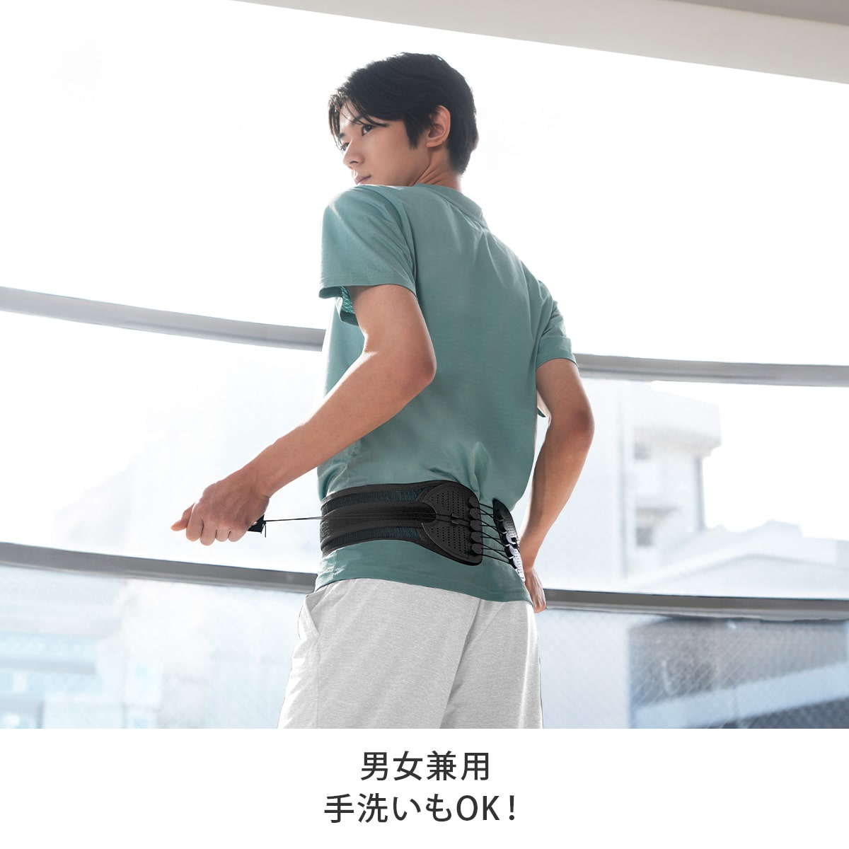 「腰の神様」は、日常使いにぴったりの腰・骨盤サポートベルト。服に響きにくいすっきりサイズで、軽やかな着け心地を実現しました。左右の滑車構造でしっかり固定しながら、簡単に装着・調整が可能。幅広面ファスナーと滑り止めでズレにくく、動いても安心です。持ち運びや収納もコンパクト、手洗いOKでいつでも清潔。腰や骨盤の不安を抱える方に、頼れるホールド力をお届けします。男女兼用で、衣服の上から快適に着用できます。
