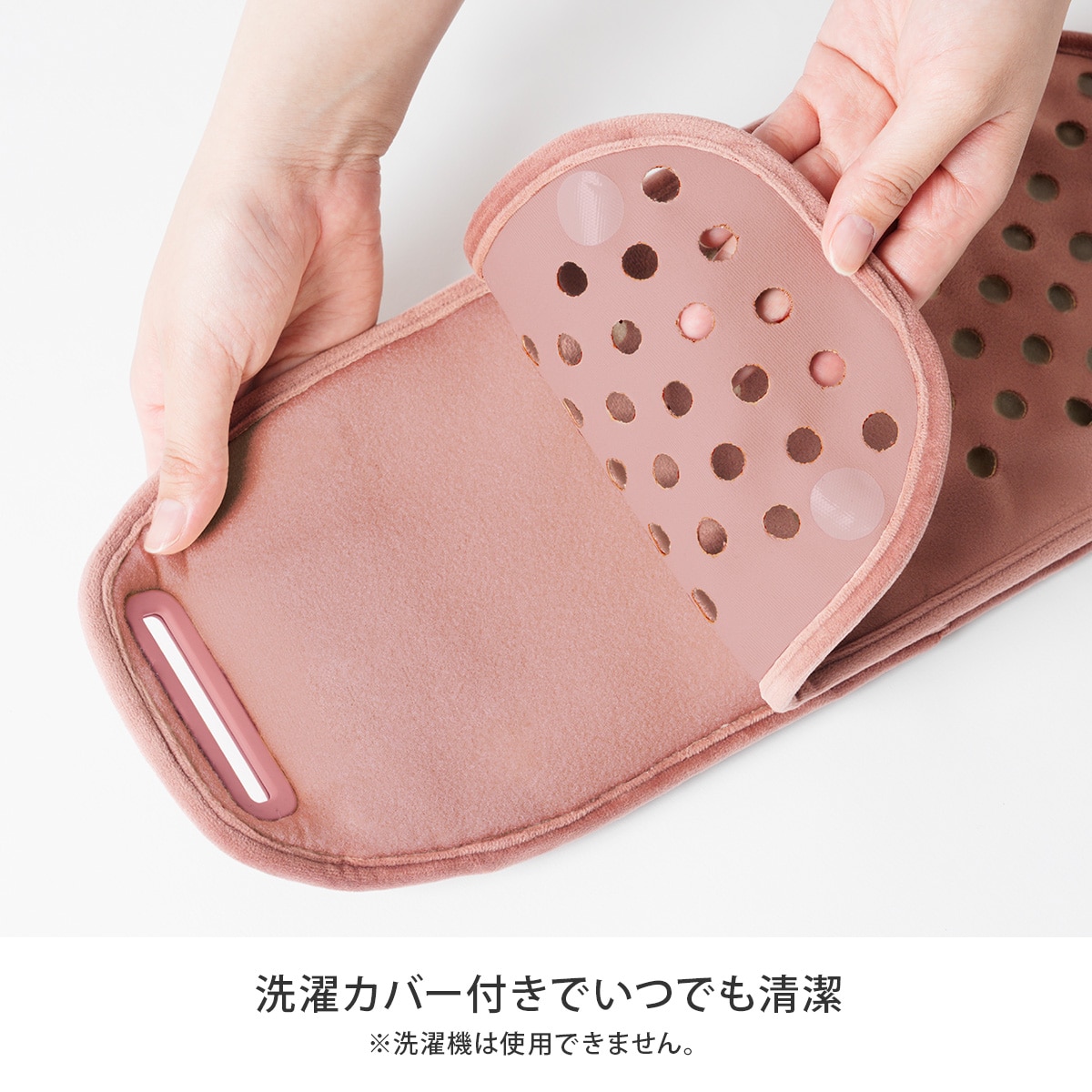 毎日使うヒーターベルトだからこそ、清潔さにもこだわりたい。肌に触れる部分には取り外して洗える専用カバー付きで、いつでも清潔に保てます。洗濯機は使えませんが、手洗いで簡単にお手入れ可能。衛生面が気になる女性にも安心して使える設計です。温活を習慣にするなら、清潔さも大切なポイントです。