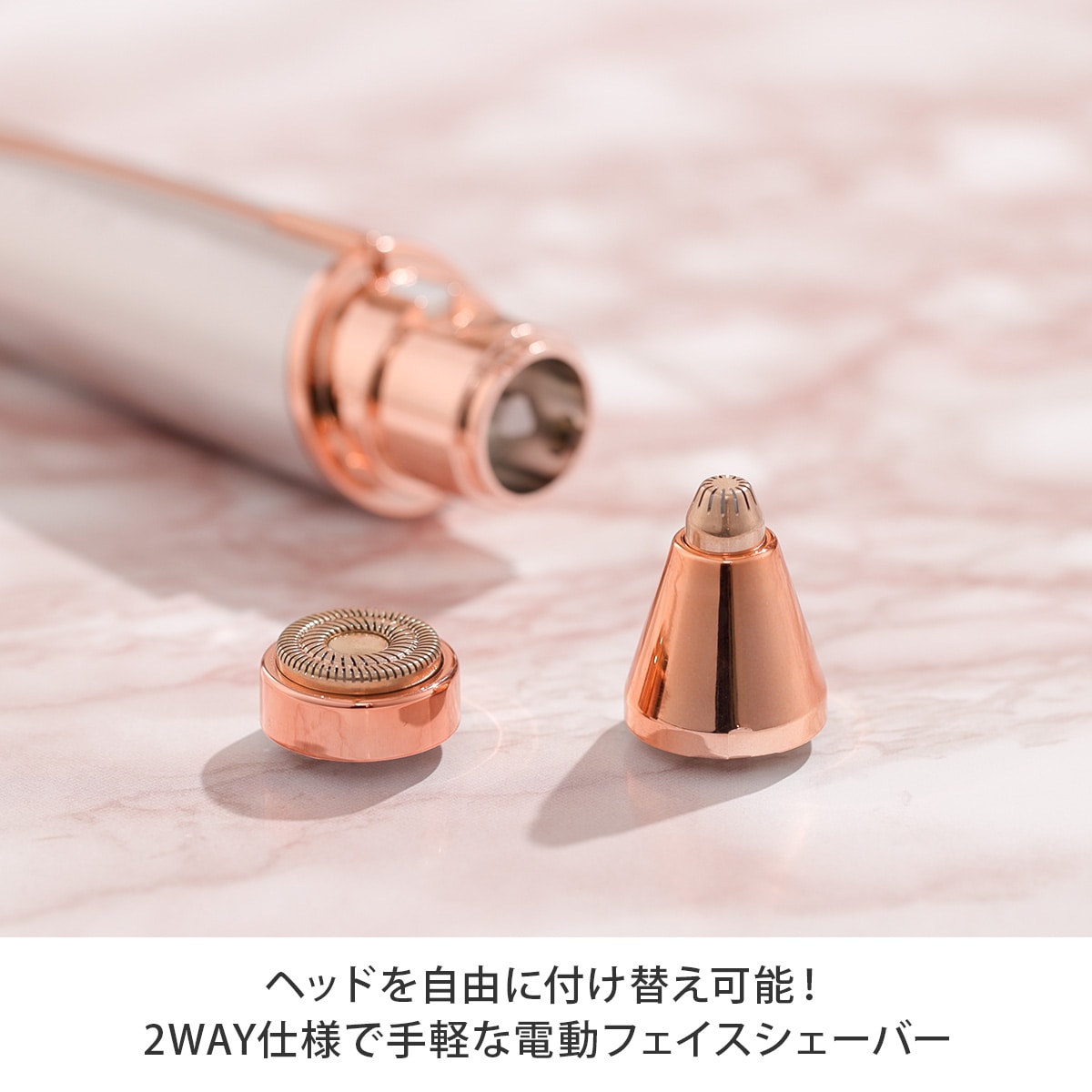 手軽な電動フェイスシェーバー!ヘッドを自由に付け替え可能!2WAY仕様で、より手軽に、効率的に顔のお手入れを!