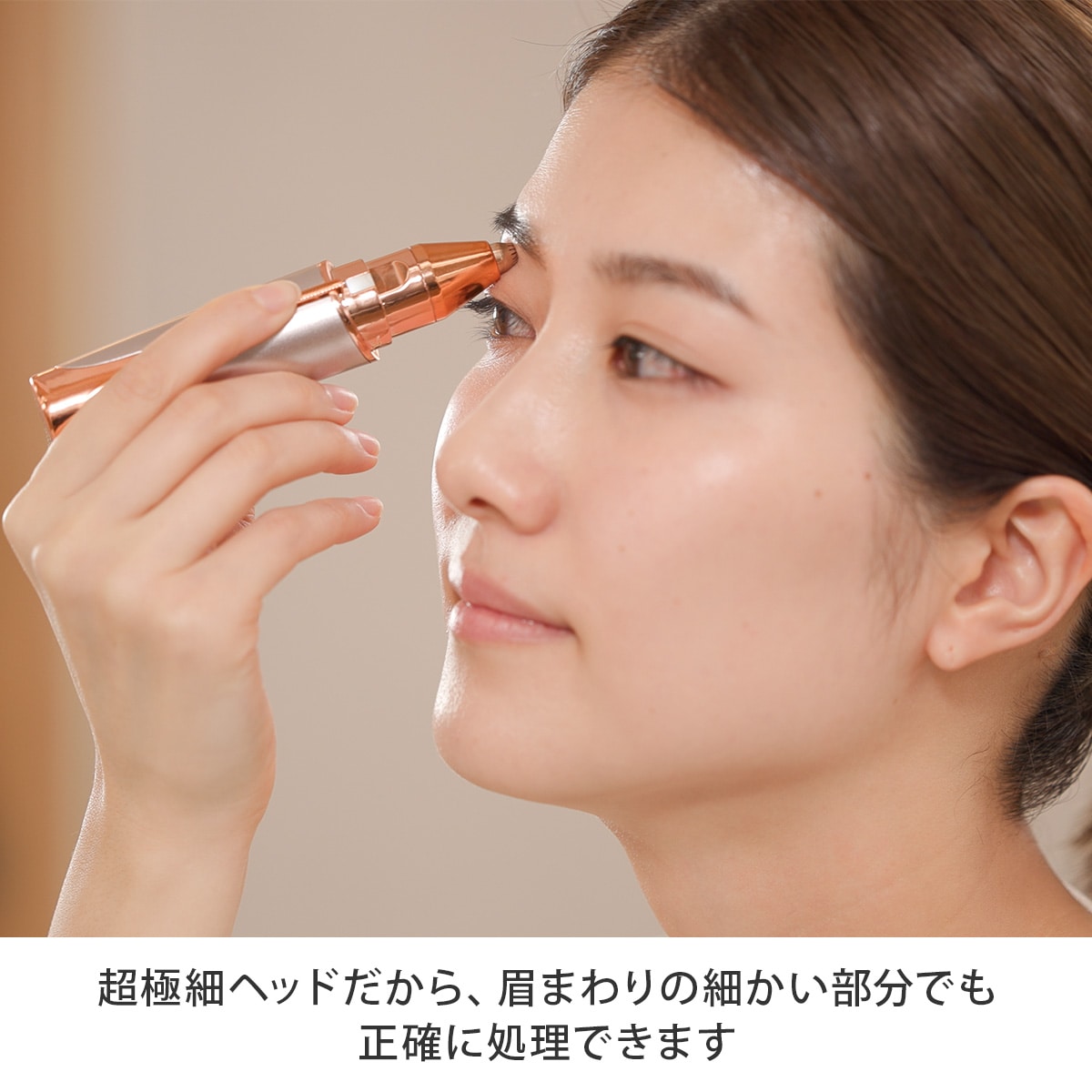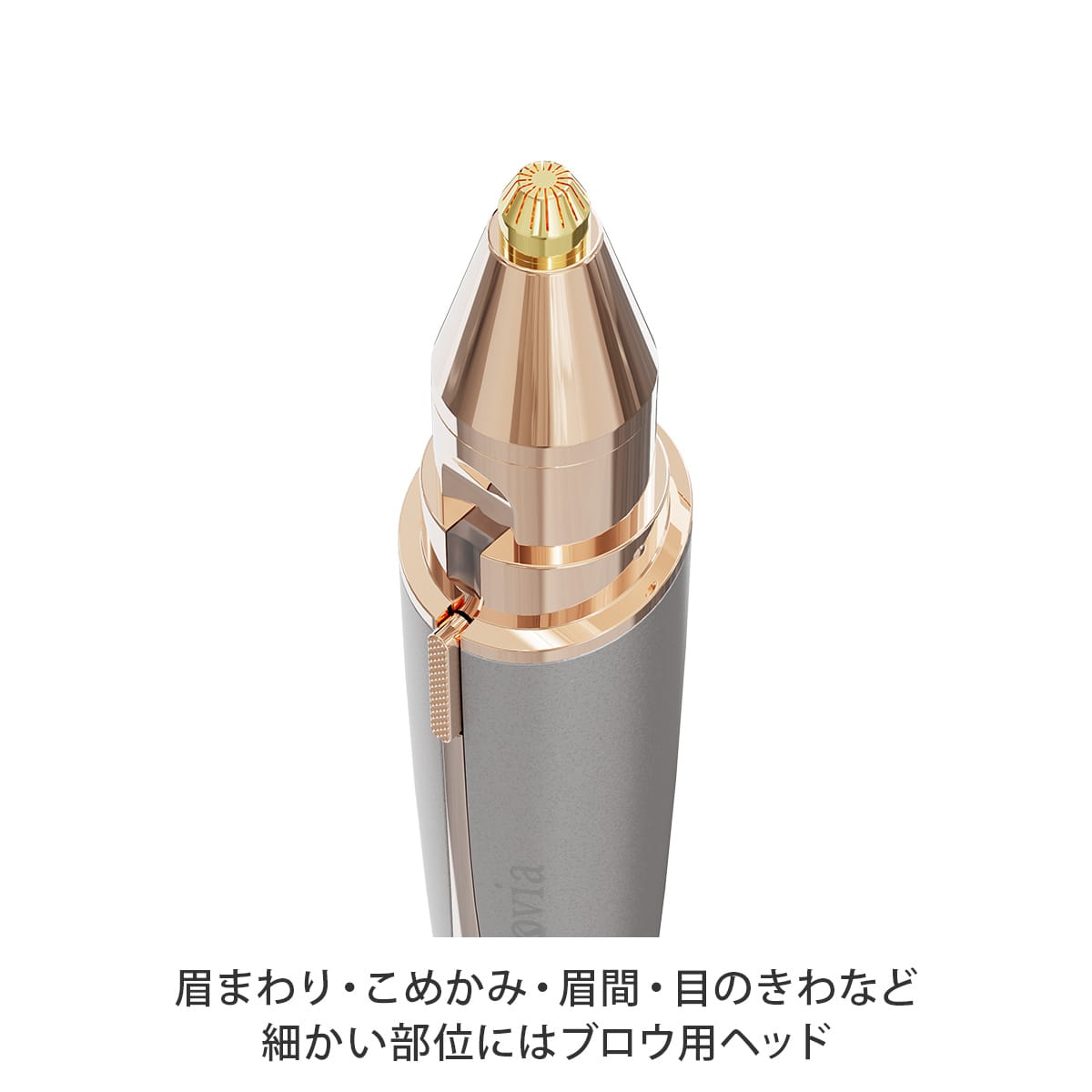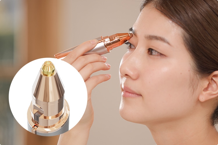 ブロウ用ヘッドは眉まわりの細かい部分のムダ毛を正確に処理できます。超極細ヘッドだから、細かい産毛もしっかりキャッチします。ペン先でなぞるような感覚で簡単にムダ毛を処理できます。