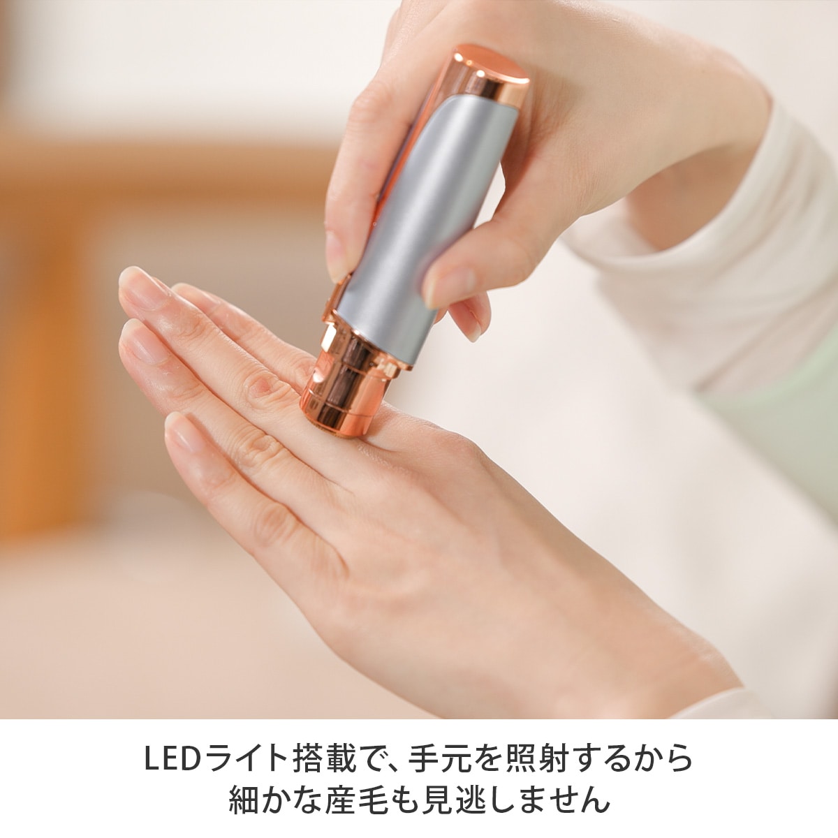 LEDライト搭載で手元を明るく照射するから、細かい産毛も見逃しません。
