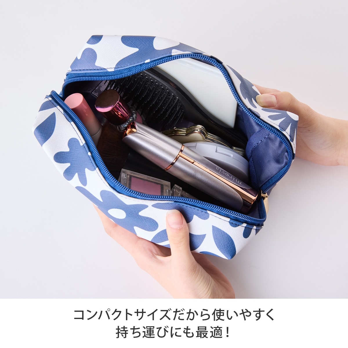 ポーチに入るコンパクトサイズだから、外出先や旅行などの持ち運びにも便利です。電池式なので気になったときにどこでも手軽にお手入れができます。コスメのようなおしゃれな見た目で気分もアップ!