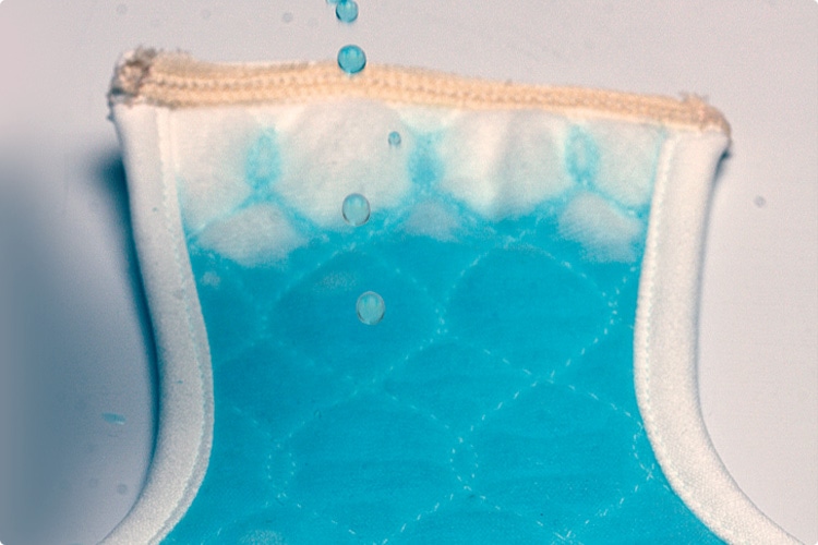 モレジェンヌには、3層の吸水パッド付き。約10ccの吸水力があるので、重い物をもったり、咳やくしゃみなどでありがちな、「あっ!」というちょい漏れに対応します。