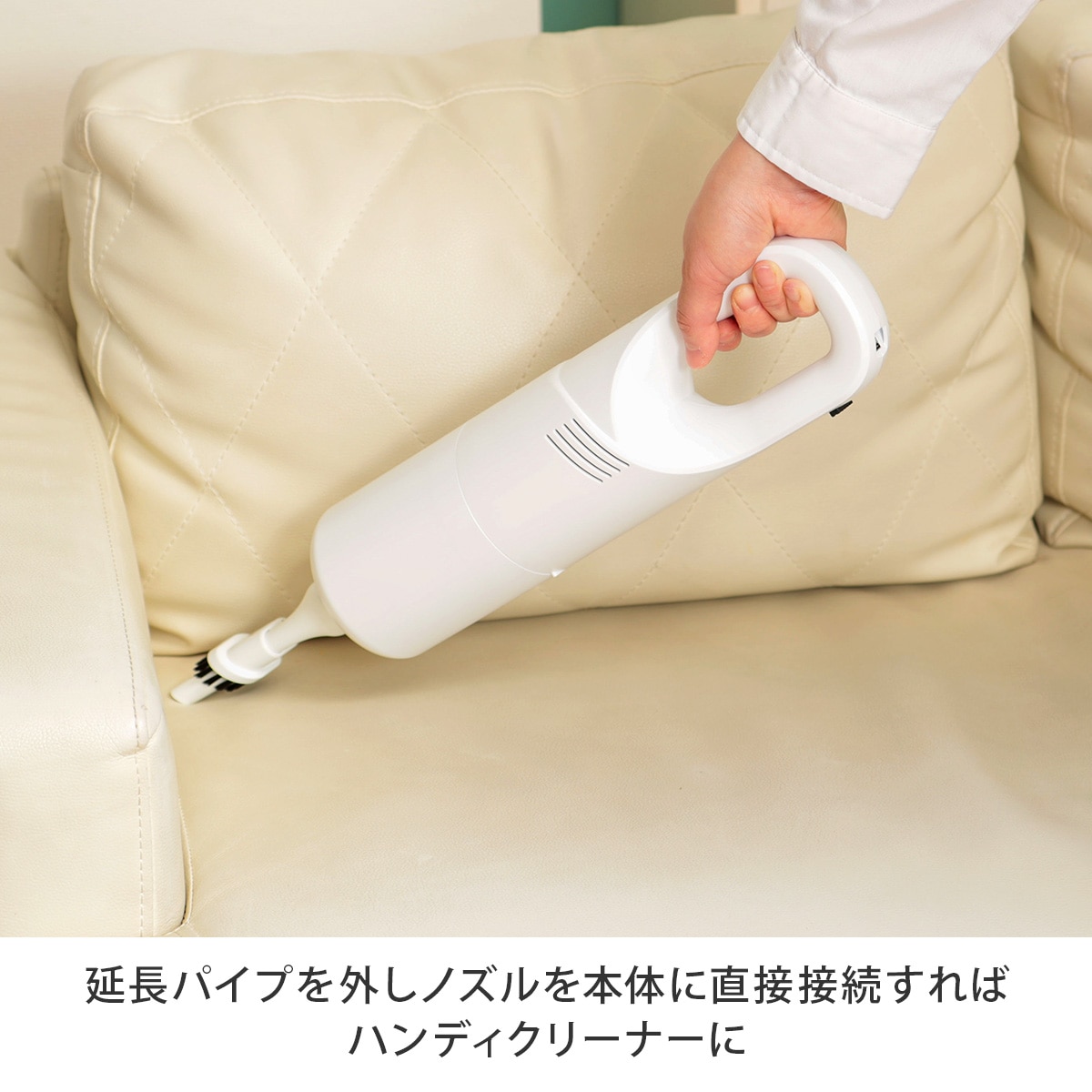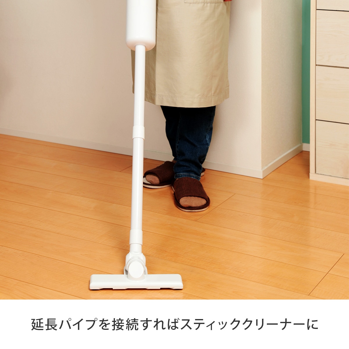 延長パイプを取り付けるだけで、スティッククリーナーとして使用可能に。床やカーペットの掃除にぴったりで、立ったまま快適に使えます。掃除の負担を減らしたい方におすすめの機能。