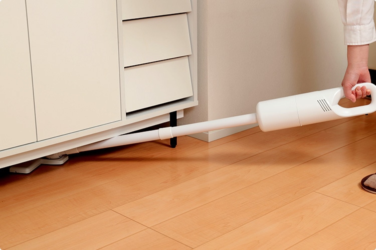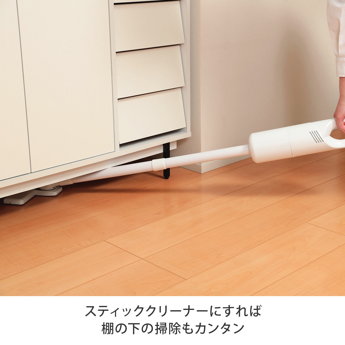 スティックタイプにすれば、棚の下やソファの下など、手が届きにくい場所も簡単に掃除可能。軽量設計だから操作もラクで、毎日の掃除がストレスフリーに。掃除の効率がぐっと上がります。
