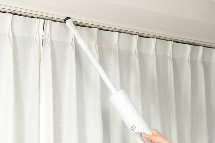 コードレススティッククリーナーSA045はブラシレスモータを採用。コードレス設計でコンセントの位置を気にせず、部屋中どこでもスムーズに掃除できます。吸引力も安定していて、細かなゴミも逃しません。カーテンレールの掃除にも⭗