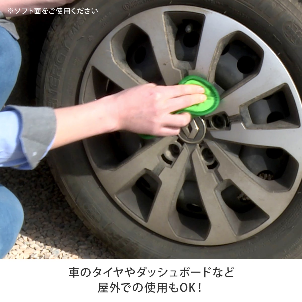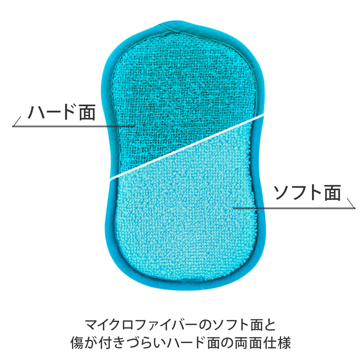 スポンジーナはソフト面、ハード面の両面使えるスポンジです。柔らかいマイクロファイバー繊維のソフト面で細かい汚れを取り除き、頑固な汚れは傷が付きづらいハード面で落とせばスッキリ綺麗に!