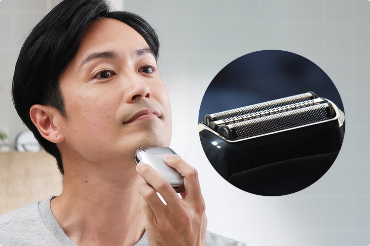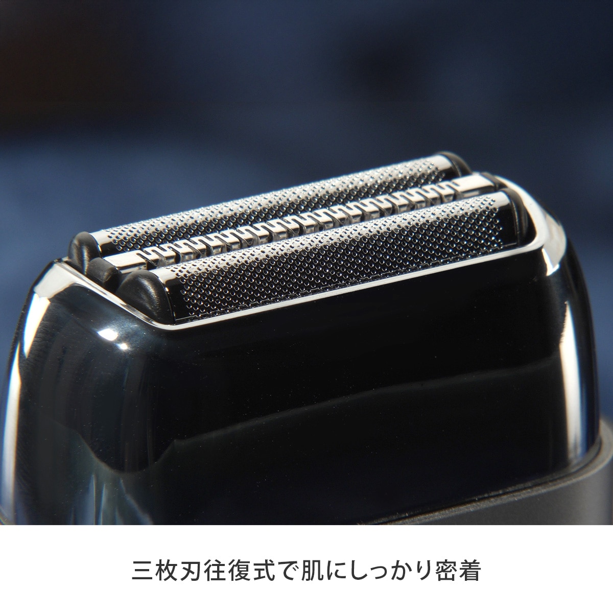 二つの深剃り刃と一つのトリマー刃の三枚がそれぞれ独立して浮き沈みすることで、長いヒゲも短いヒゲも正確にカットします。高速振動モーター付きでシェービングパワーを自動で調節します。