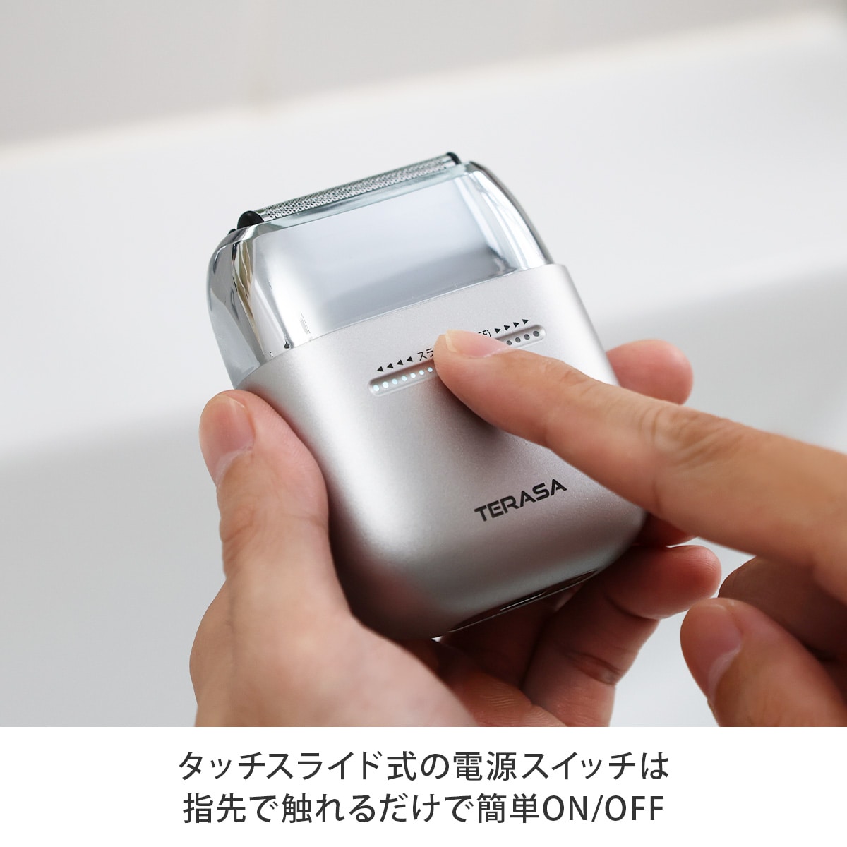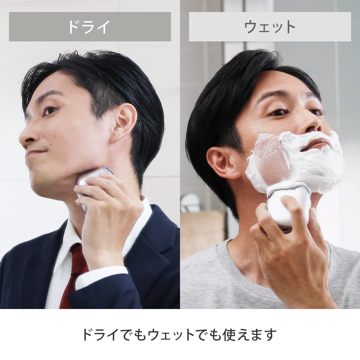 ナノシェーバーは三枚刃往復式の小型シェーバーです。三つの刃がそれぞれ独立して浮き沈みすることで、肌にしっかり密着して長いヒゲも短いヒゲも正確にカットします。IPX7の防水設計なので、水洗いができ掃除も簡単。ドライでもウェットでも使えて、お風呂での使用が可能なのも嬉しいポイントです。手のひらサイズで携帯しやすく、旅行先への持ち運びにも便利!