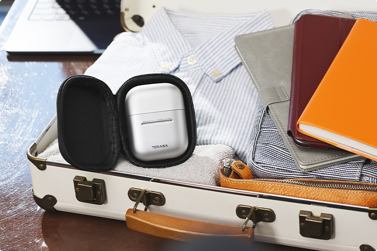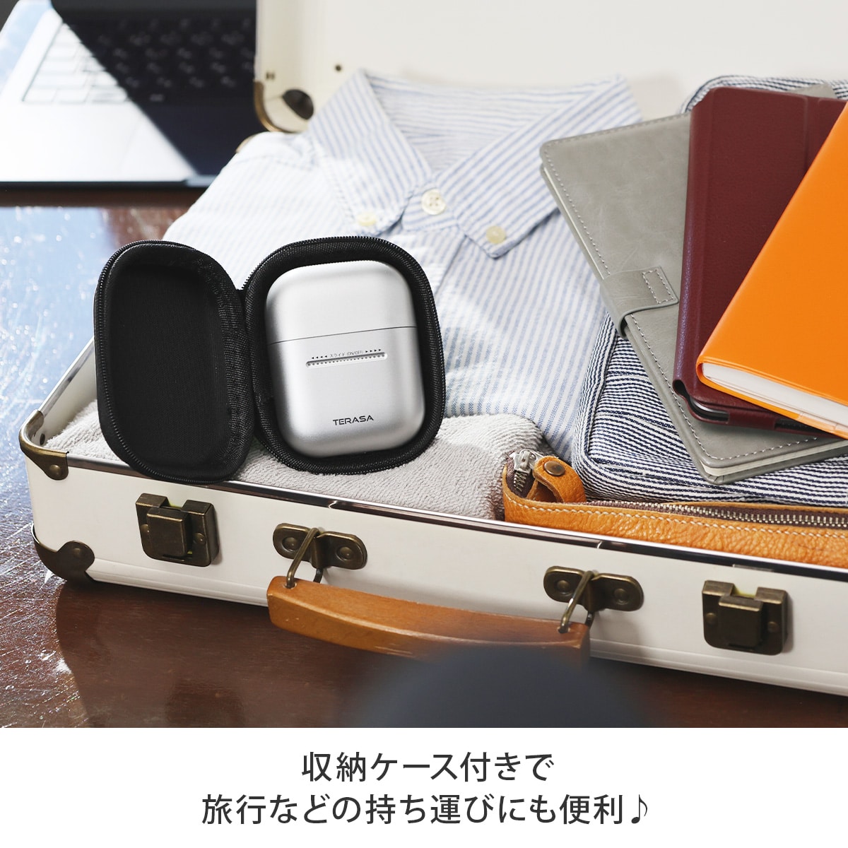 手のひらサイズのコンパクトなボディで持ち運びも楽々!便利な収納ケースが付いていて、旅行や出張でも大活躍します。