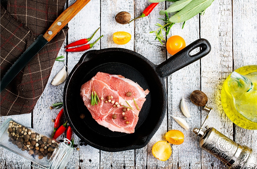 「鉄製のフライパンの最大の魅力は、熱伝導性の良さと、頑丈で長持ちすること。調理面が均一に熱せられるので、特にお肉を焼くときなどは焼きムラがなく、表面はカリッと、中はジューシーに仕上がります。