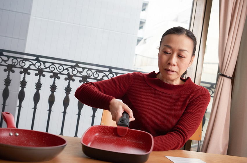 「コーティング加工されたフライパンは、コーティングに傷みが目立ち始めたら買い替えたほうがいいでしょう」と風間さん。「調理中に、食材のくっつきや、焦げつきが出てきたら買い替えのタイミングです」。逆に言うと、食材のくっつきや焦げつきがなければ、まだまだ使えるフライパンということになります。