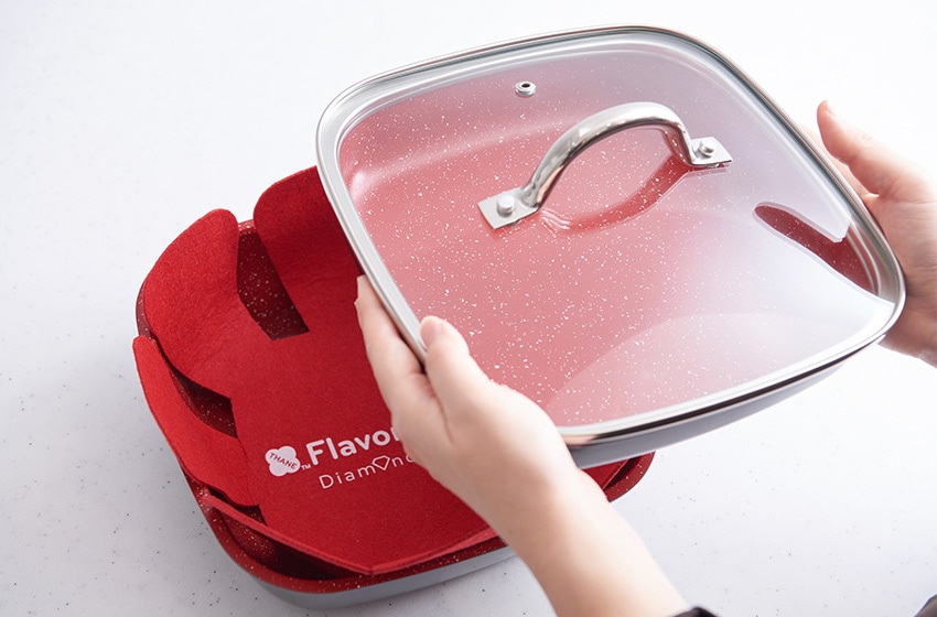 その点、フレーバーストーンは、ステンレス板を使った50万回※の耐摩耗テストをクリアしているので、コーティングがはがれにくいだけでなく、フライパン自体も長持ちすると思います」