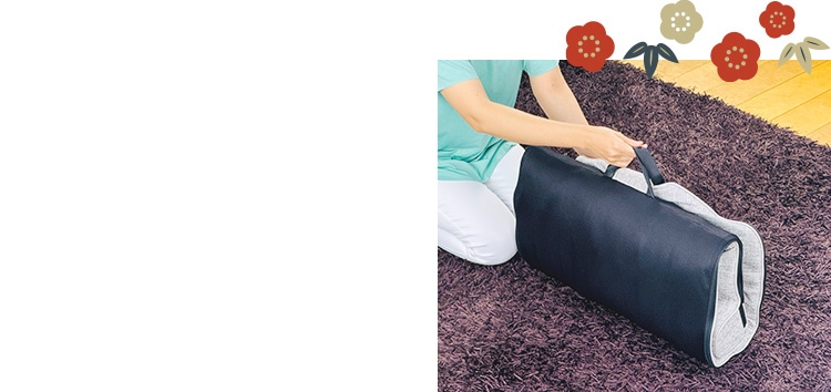 使わないときは、本体をくるくる巻いてコンパクトに収納。専用の収納袋に入れれば、持ち運びに便利です。