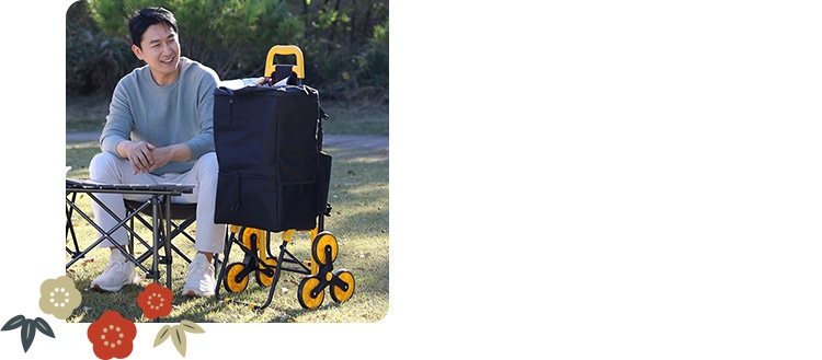 3つのタイヤが付いたホイールも回転するため、タイヤが段差をしっかりととらえ、従来のショッピングカートよりラクに荷物を運ぶことができます。