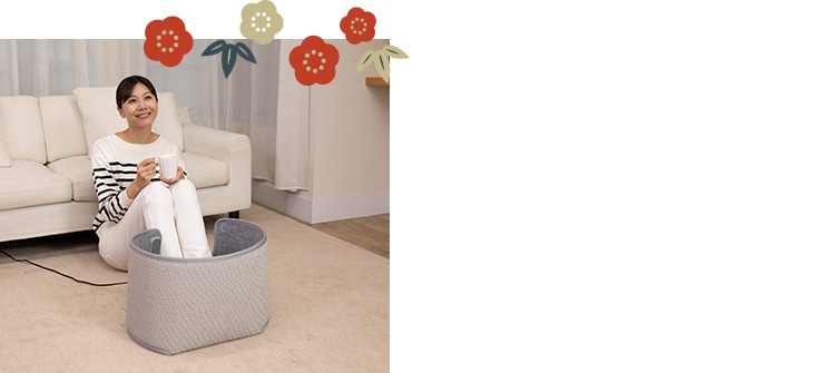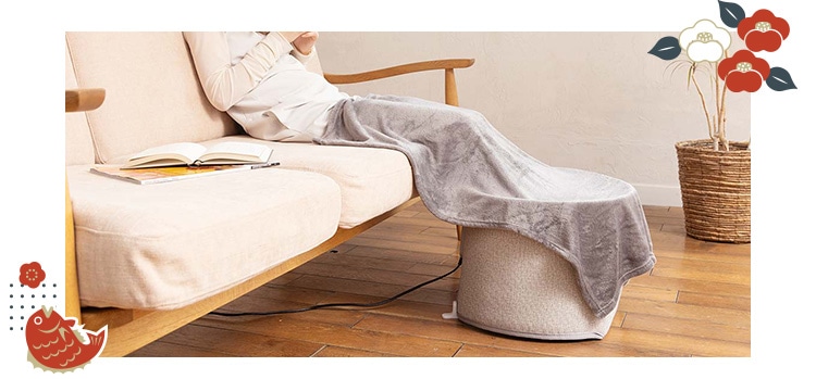 冷える足元を360度から温めます。足裏マット付きなので、床からの冷気もブロック。付属の専用毛布を掛ければ熱を逃さず、こたつのようにポッカポカ。