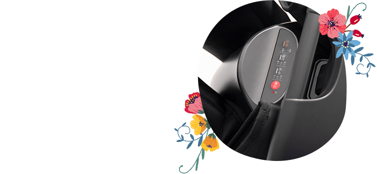 使いやすいコントロールパネルで、3種のマッサージコースと3段階の強さが選択できます。