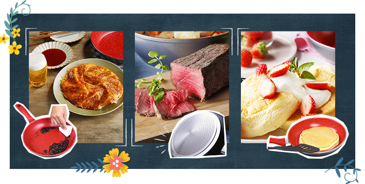 くっつきにくく焦げ付きにくい、遠赤外線効果でジューシー、ムラなく焼けるといったフレーバーストーンの特徴を継承。