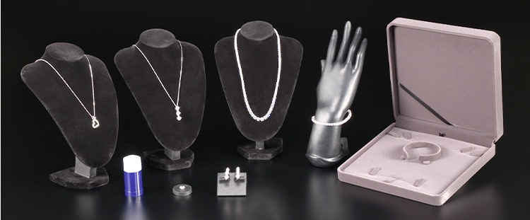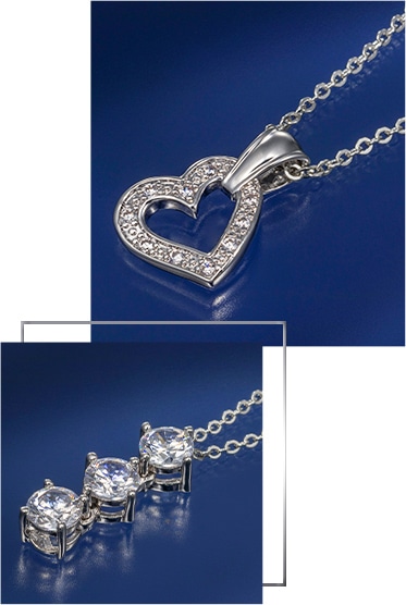 ラウンドデザインネックレス、テニスブレスレット、ペンダントトップ×2(三石、ハート)、サービスチェーン×2、イヤリング、専用収納ケース、宝飾スコープ、鑑賞用石