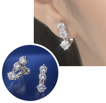 大粒1.4ctの石を縦に並べたストーンは優雅に輝きます。