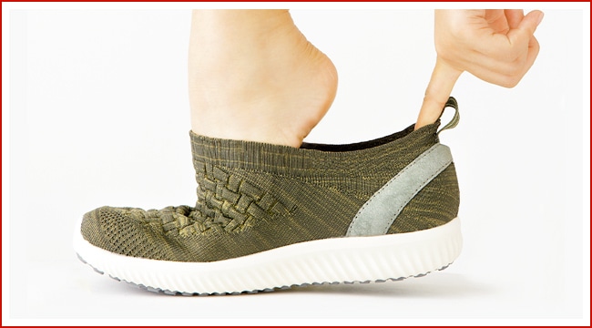 幅は締め付けもなくゆったりとしているので、足の幅に合わせて伸びてくれます。さらに外反母趾の方にもやさしい設計で、足にピッタリついてきます。