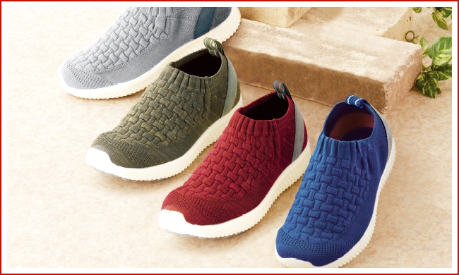 履き口は伸びるので、サッと簡単に脱ぎ履きができます。紐なしなので結び直す必要もありません。伸縮性に優れたニット素材で足に吸い付くようにフィットしてくれます。